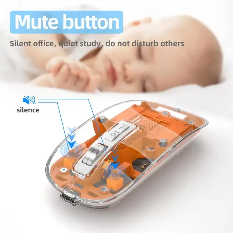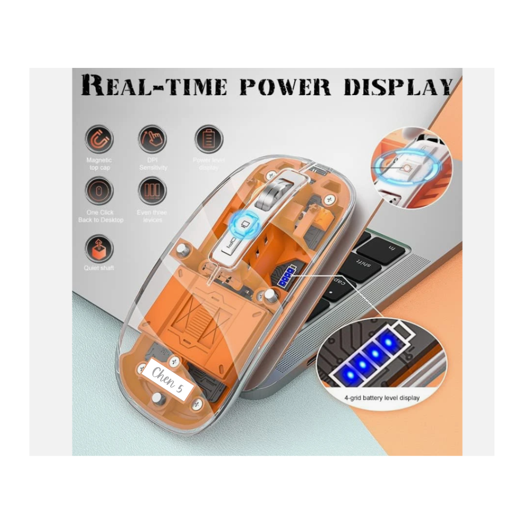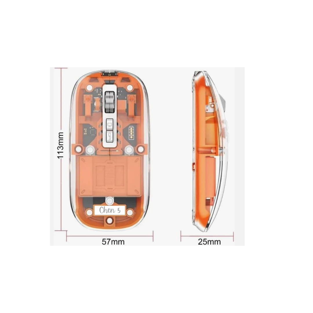 • Slim, Transparent Design: This wireless mouse boasts a modern, transparent body that adds a touch of elegance and sophistication to any gaming setup or workstation. Its slim and lightweight design makes it highly portable, fitting seamlessly into your bag for on-the-go use.