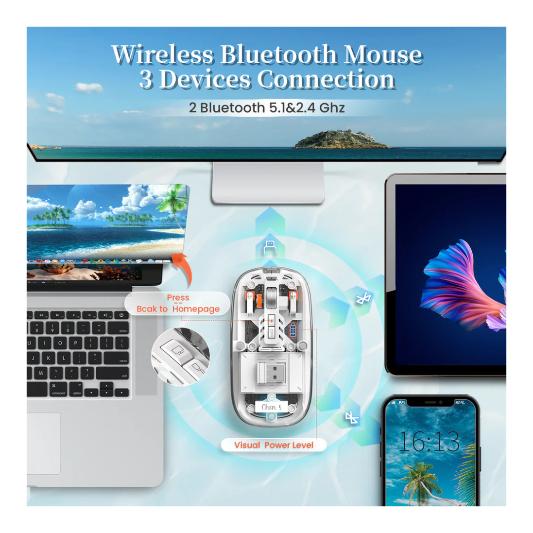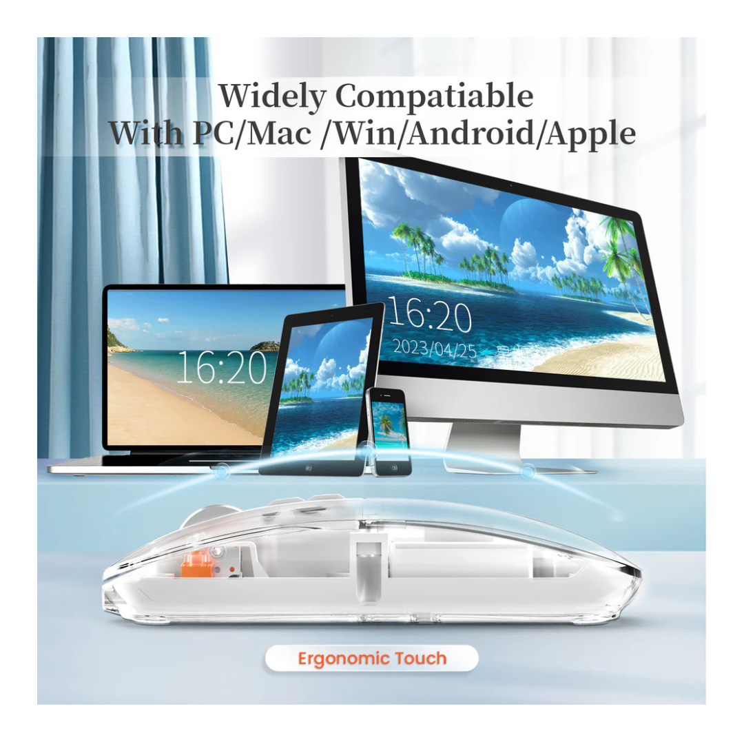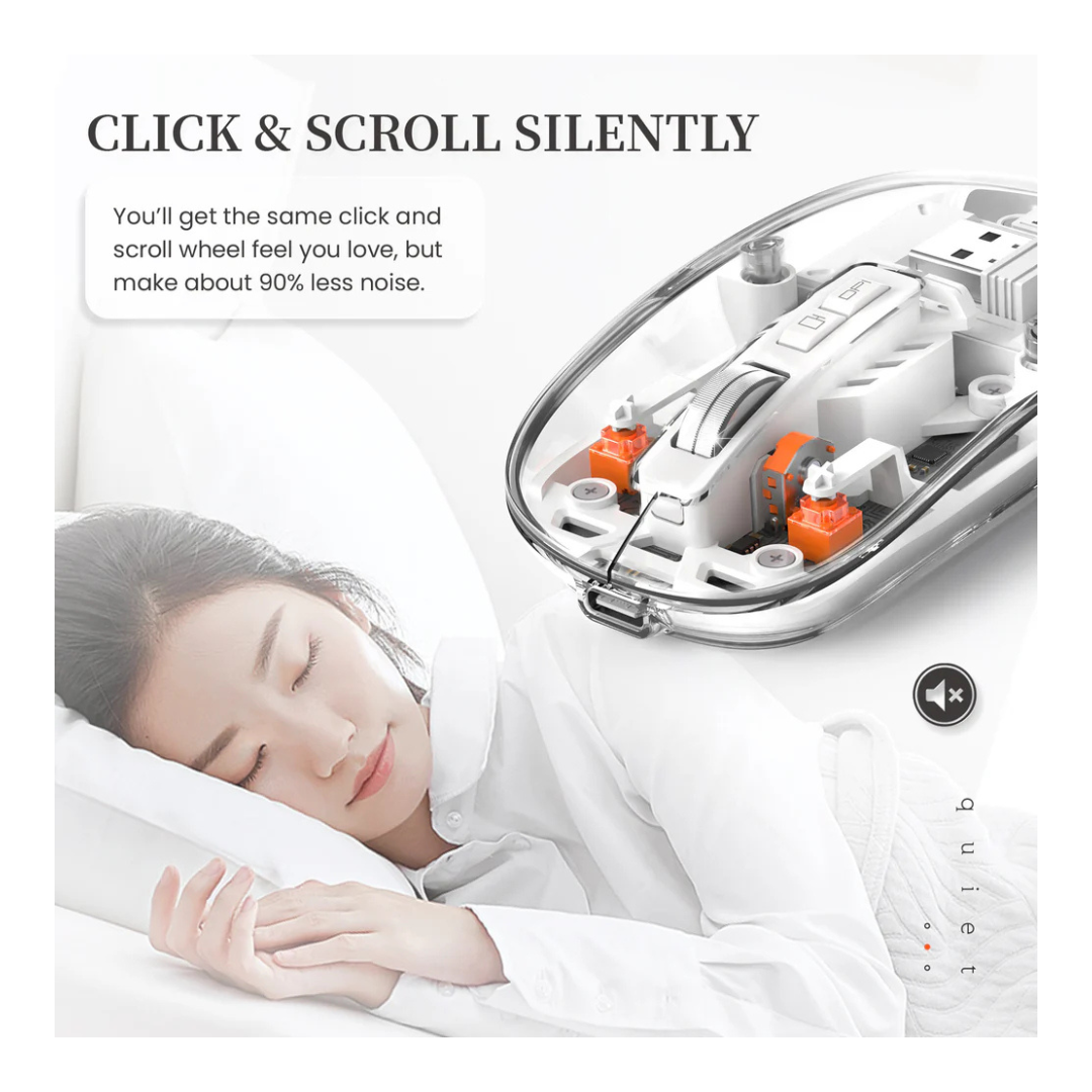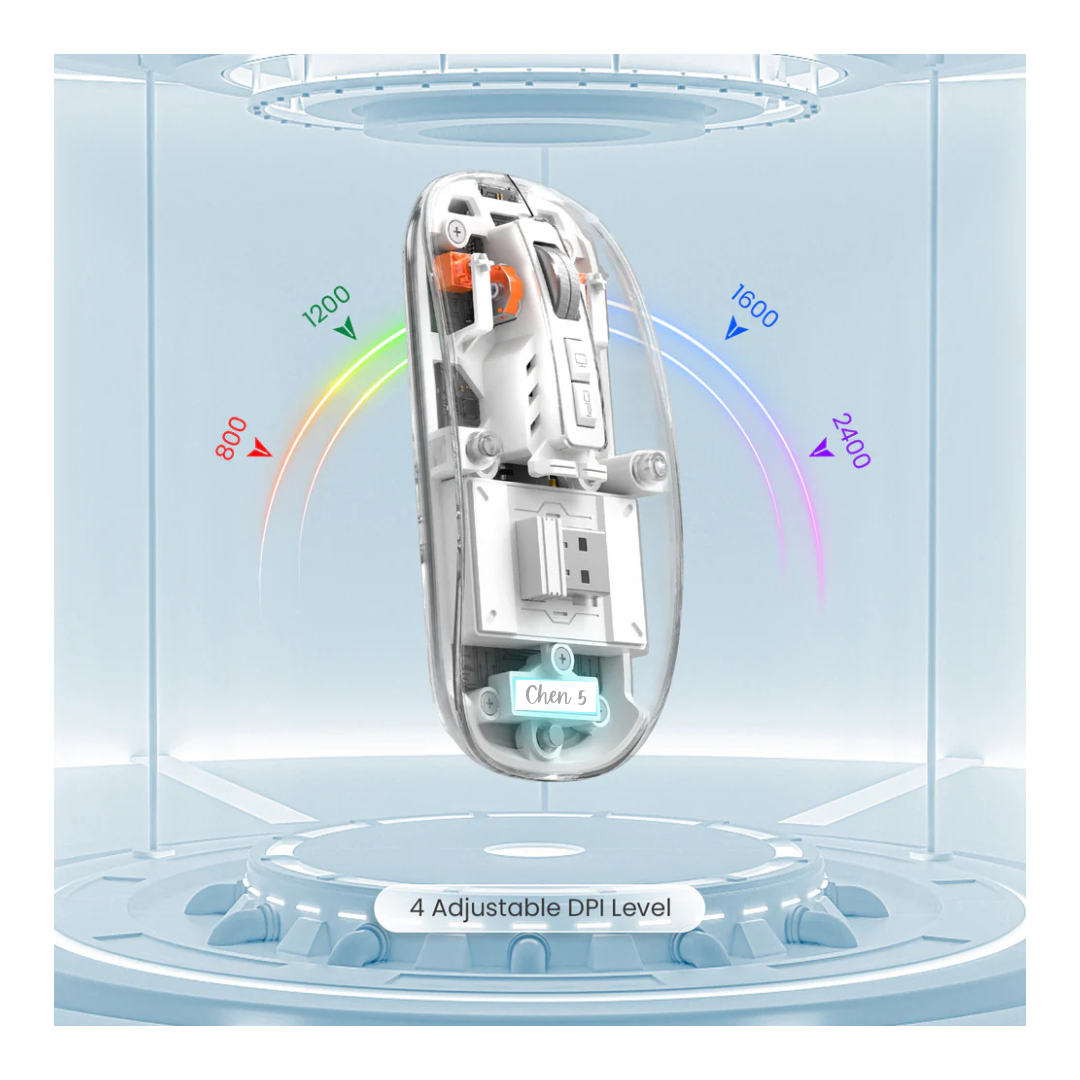 • Slim, Transparent Design: This wireless mouse boasts a modern, transparent body that adds a touch of elegance and sophistication to any gaming setup or workstation. Its slim and lightweight design makes it highly portable, fitting seamlessly into your bag for on-the-go use.