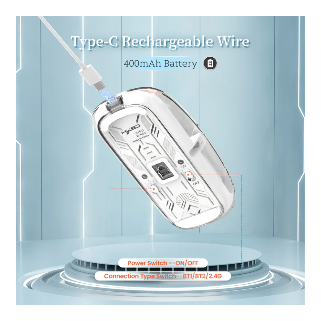 Wireless Transparent Mouse White (Bluetooth + USB)